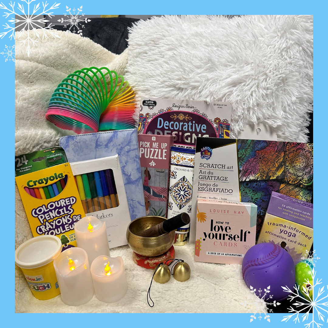 Help a woman heal by supplying stress balls, journals, cozy pillows and blankets, and more to fill a Wellness First Aid Kit.